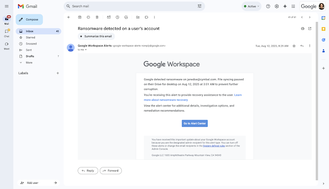 この新機能では、Google Driveをデスクトップにインストールしている場合、ランサムウェアが検出されるとファイルの同期が一時停止され、ユーザーはコンピュータ上に通知が表示されます。