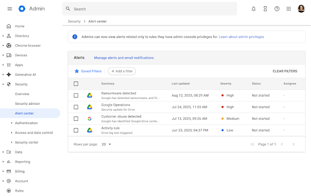 また、管理者コンソールのセキュリティセンターにも警告が表示され、ユーザーと管理者それぞれに通知メールが送信されます。これにより、会社のIT管理者は迅速に対応を取ることができ、感染拡大のリスクを抑えることができます。