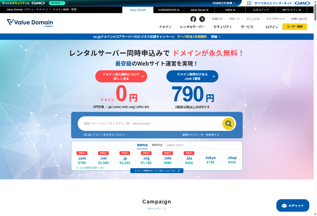 company.com)。 - まだ持っていない方は、申し込みの途中でGoogleから購入することも可能ですが、「お名前.com」や「Xserverドメイン」などで事前に取得しておくのが一般的です(費用が安く、管理もしやすいため)。